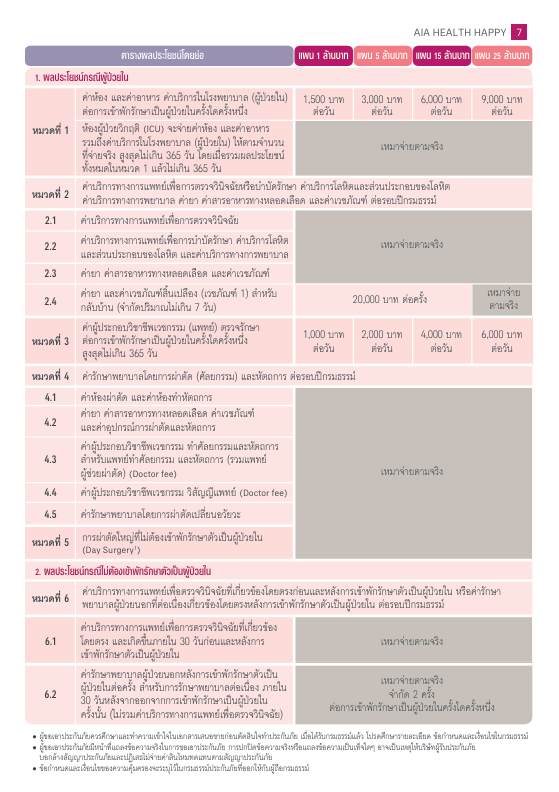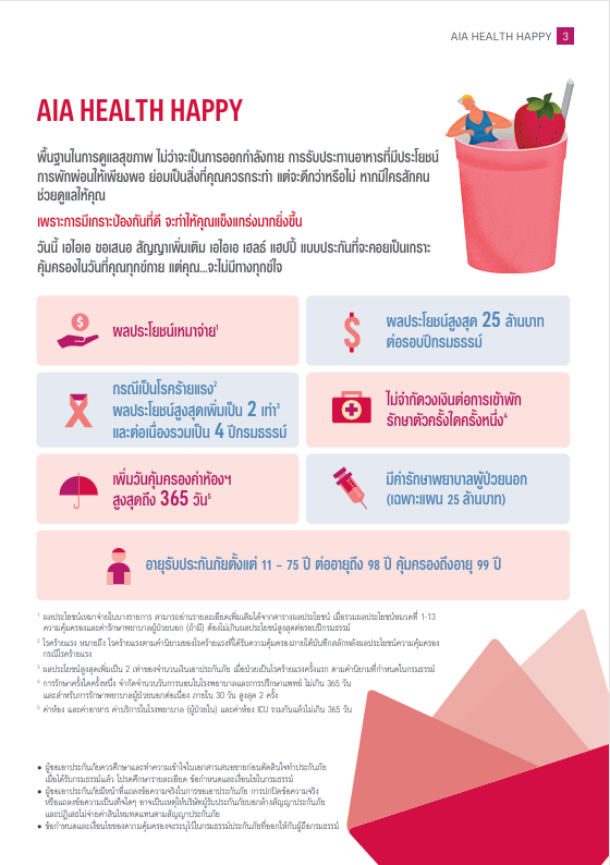 AIA Health Happy | ประกันสุขภาพเหมาจ่าย (สัญญาเพิ่มเติม)