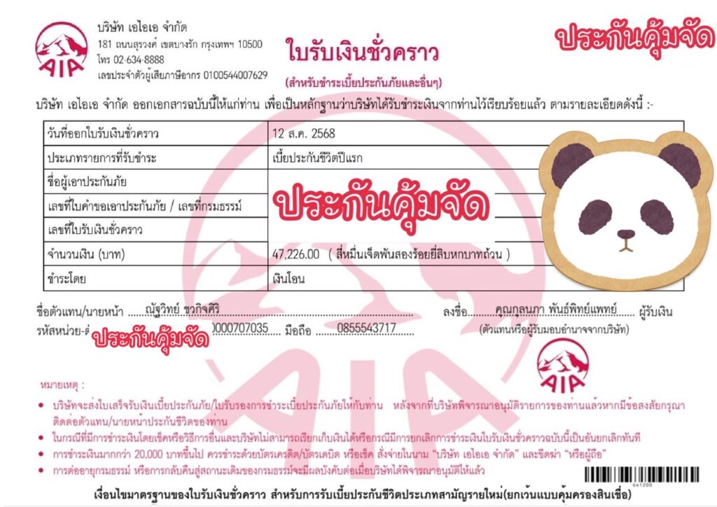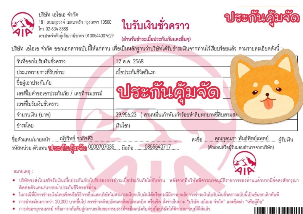 - 🚩และชำระเงินเข้าบริษัท AIA เท่านั้น ไม่รับผ่านตัวแทน